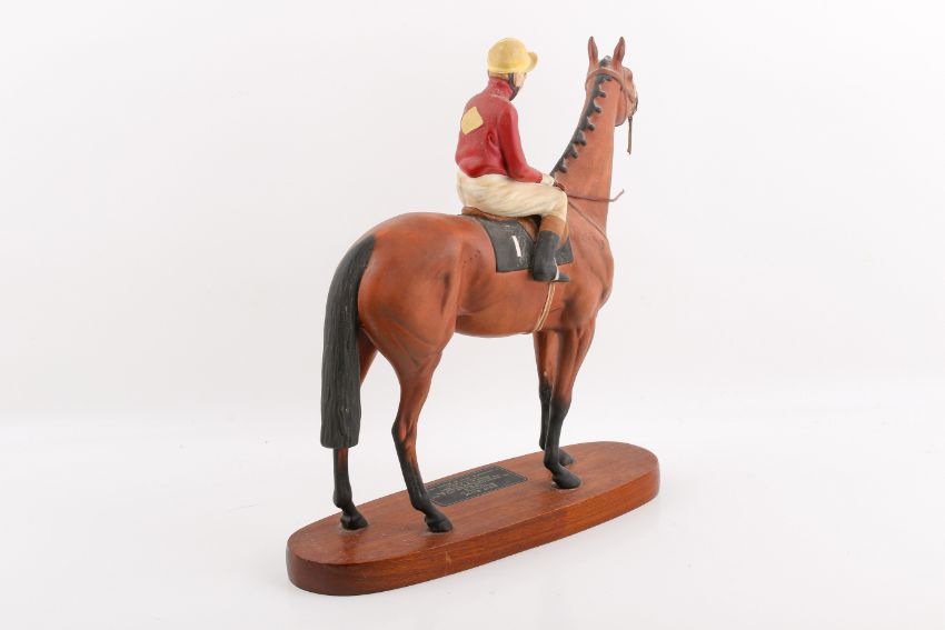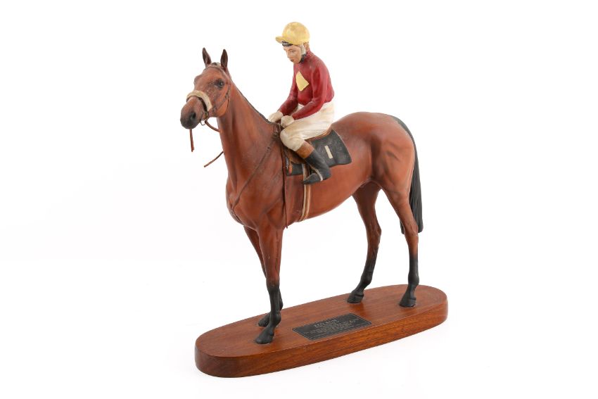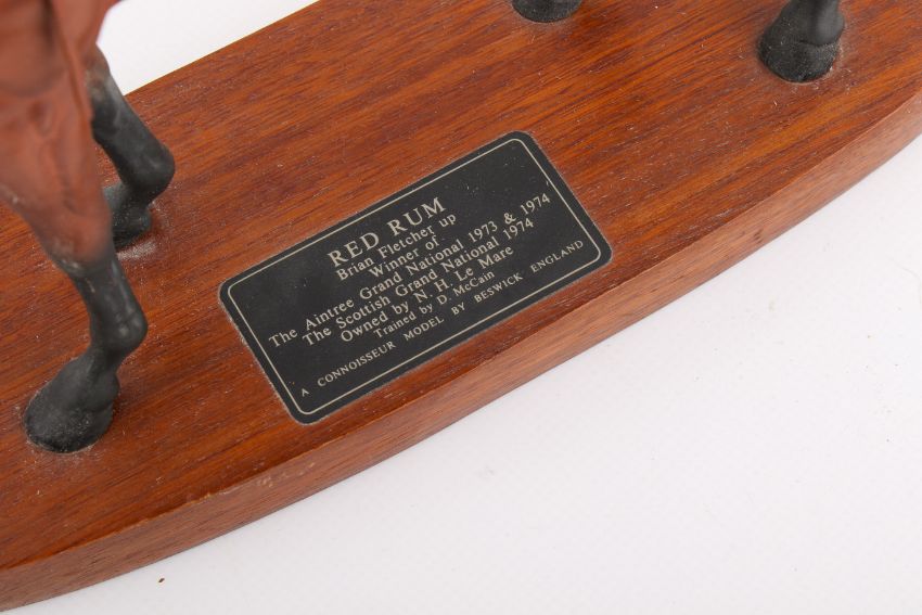 Horse Racing Interest. A Beswick ceramic horse Red Rum with Brian Fletcher up. Raised on an oval wooden base. H34cm