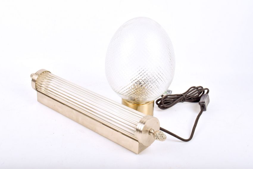 Two assorted modern lights. Including a contemporary Art Deco style wall light with glass rods and pineapple finials plus a globular shaped table lamp. Largest H25cm