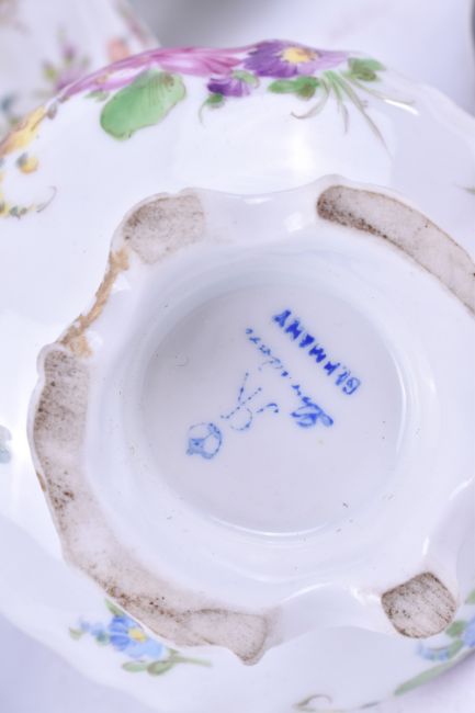 A collection of hand painted Dresden tablewares. Including cups, saucers and a tea pot, etc.