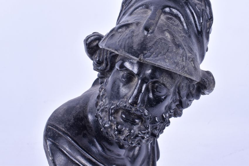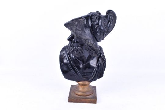 A 20th Century cast iron bust of Ajax on gilded socle. H37cm x W19cm