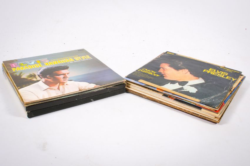 A collection of assorted Elvis Presley vinyl LP records. Including two box sets, in a carry case.