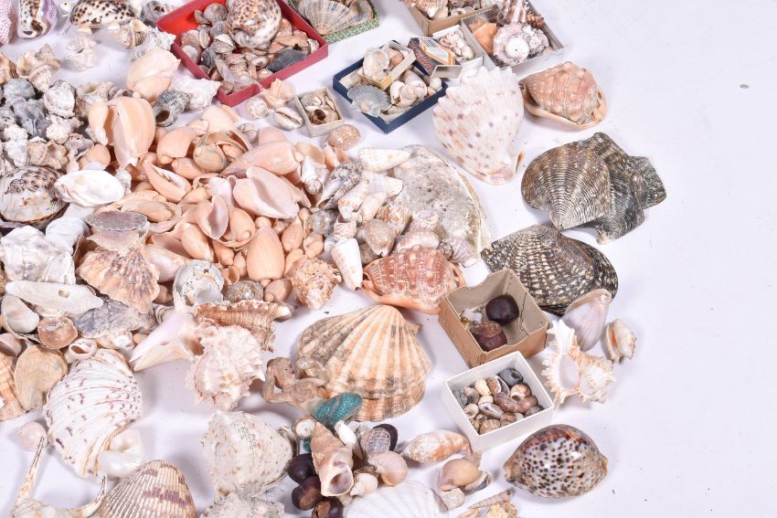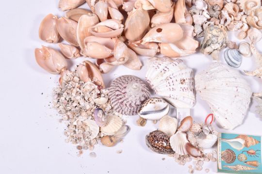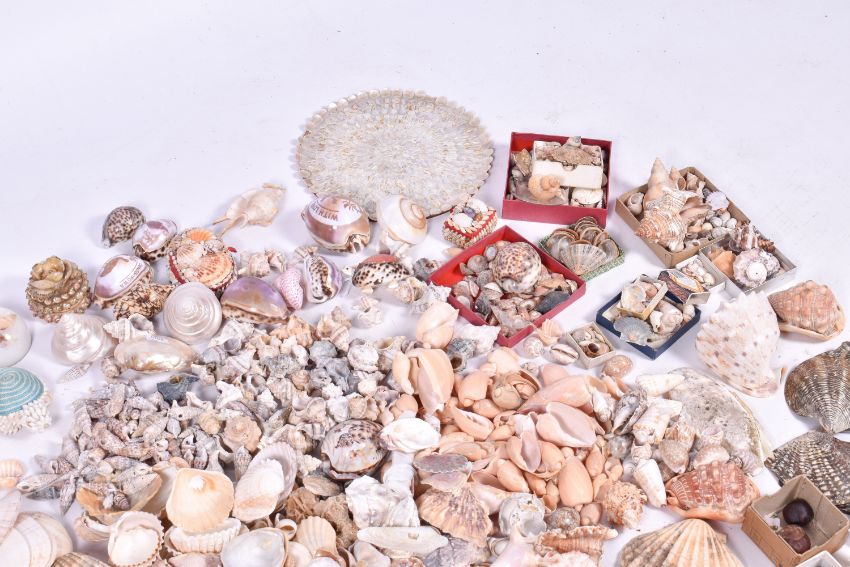 A Large quantity of sea shells.Including shells in display and natural form. Largest L35cm.