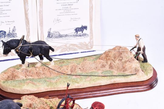 Three Border Fine Arts Classic models of working horses with certificates. Including 'Clean Sweep' no. 140/950. Largest H16cm
