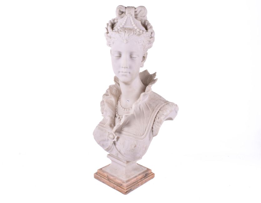 A Parian Ware composite decorative bust of a lady. Enscription to base 'Parian, Paris'. H64cm