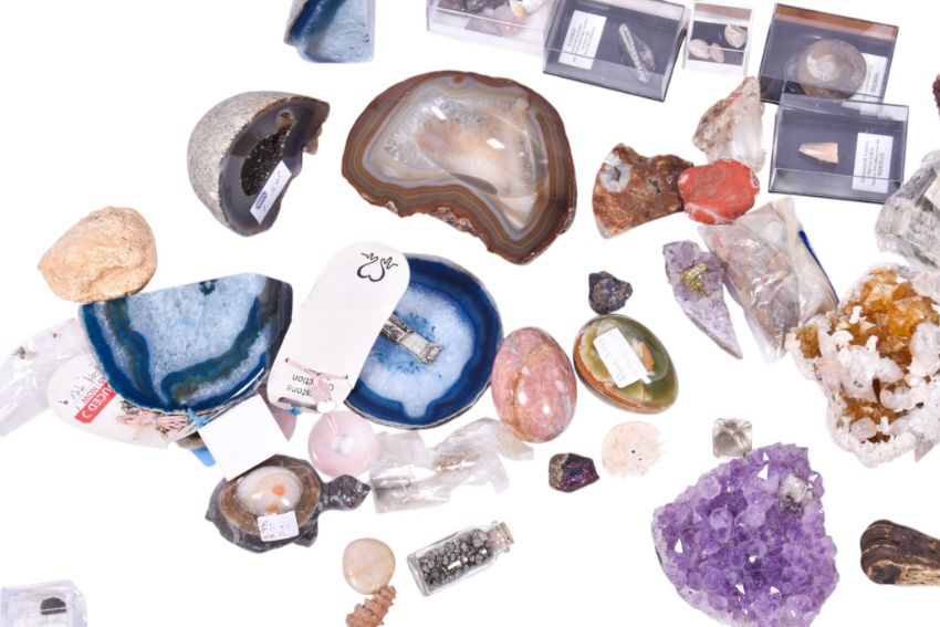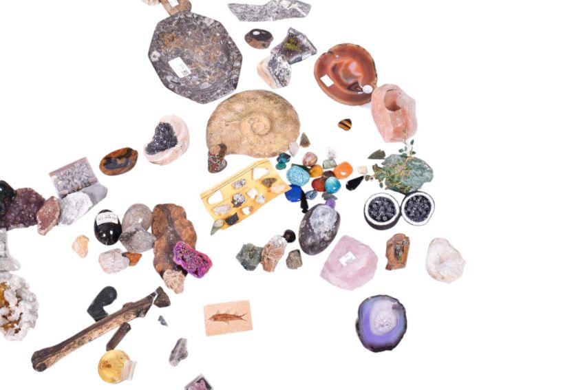A quantity of geological and fossil specimens. Largest W23cm x H22cm