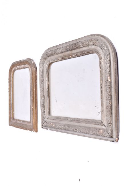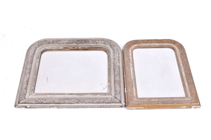 Two arched top over mantle wall mirrors with moulded frames. Largest 62cm x 53cm