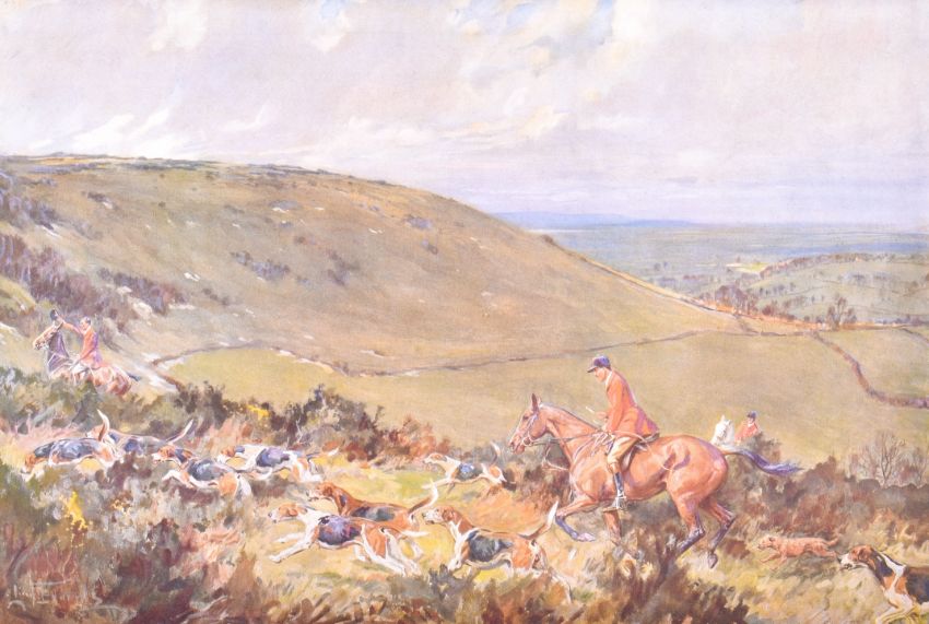 After Lionel Edwards (British 1878-1966), hunting scene, print. Signed lower left, 52cm x 38cm, framed, 77cm x 65cm