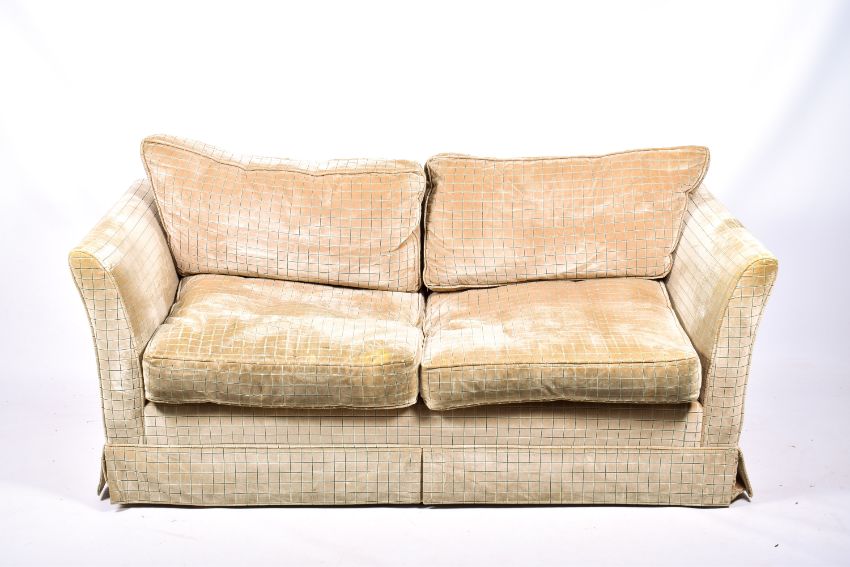 A contemporary two-seater low back sofa with stripped upholstery. H67cm x W173cm x D80cm