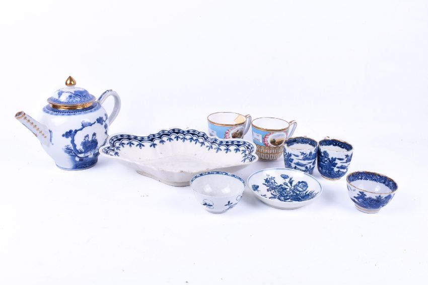 A quantity of 18th and 19th Century Worcester porcelains. Including teapot, cups and small bowls. Largest H15cm