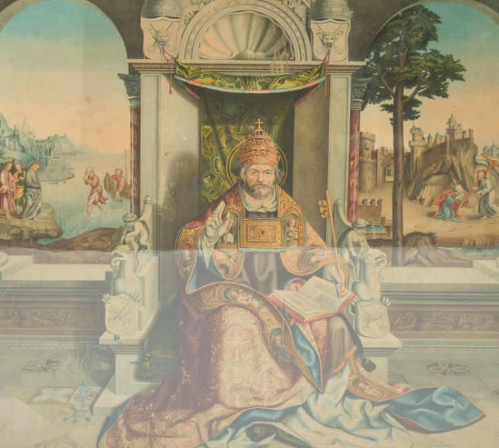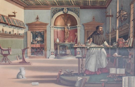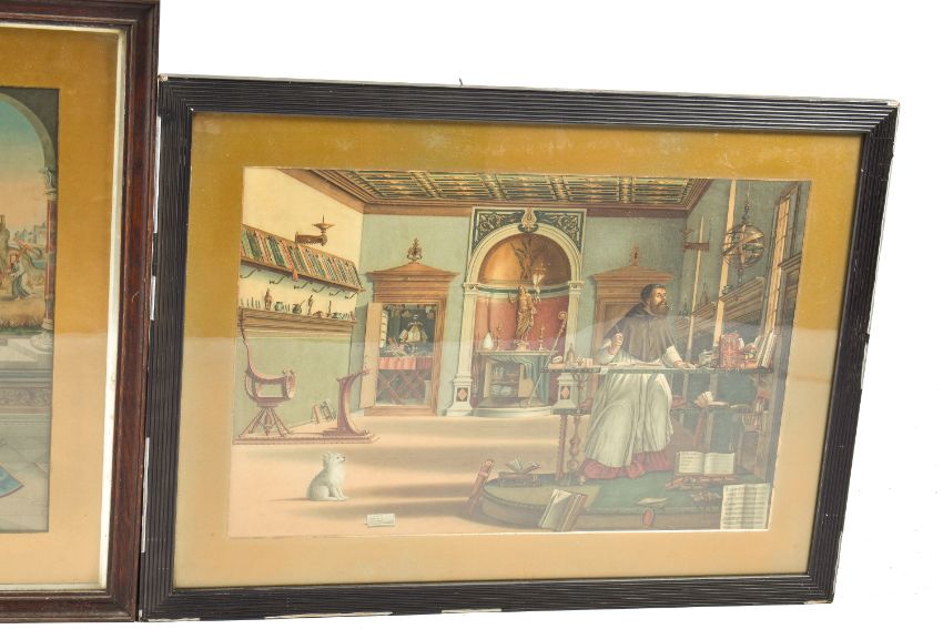 'St. Jerome In His Study' print after Vittore Carpaccio and another religious print. Framed and glazed. Largest 87cm x 64cm
