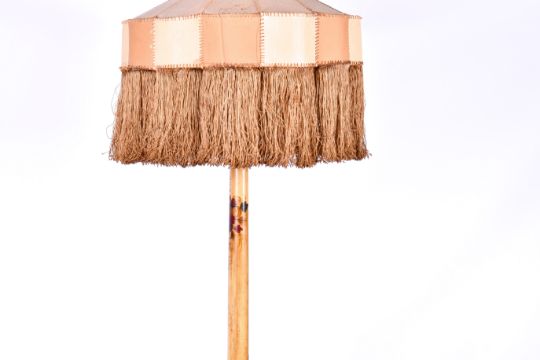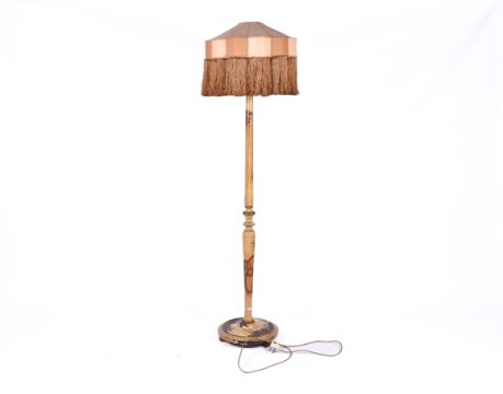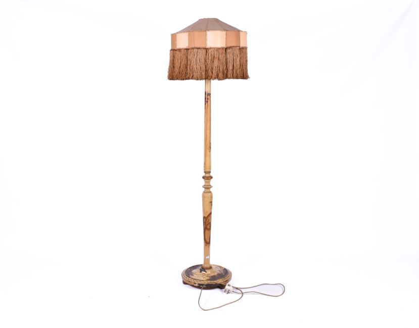 Circa 1920's chinoiserie standard lamp and shade. Raised on a circular base. Total H175cm