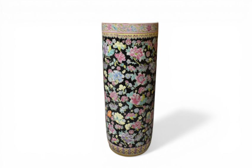 A 20th century Chinese black ground stick stand. H61cm x 23cm Diameter