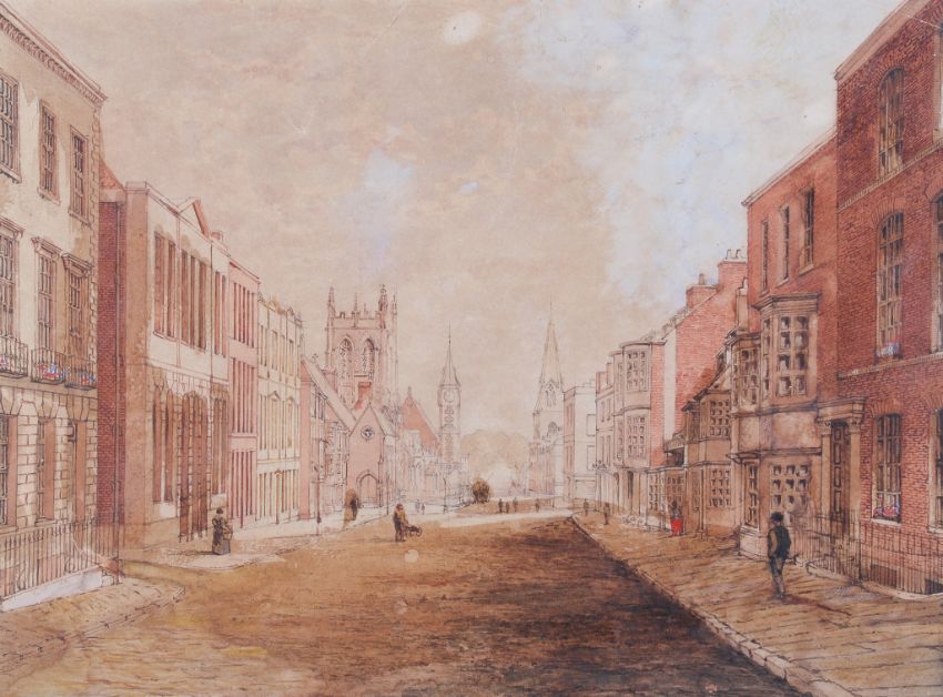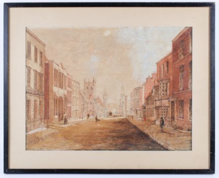 In the manner of George Shepherd (1784-1862), watercolour, Victorian street scene. Unsigned, 31.5cm x 42.5cm, framed and glazed, 44cm x 55cm.