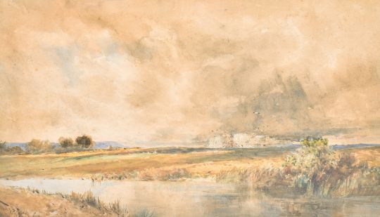 Thomas Bush Hardy, watercolour, Riverscape. 26cm x 44cm, framed and glazed, 65cm x 47cm