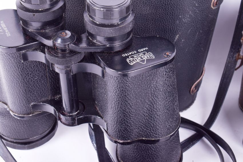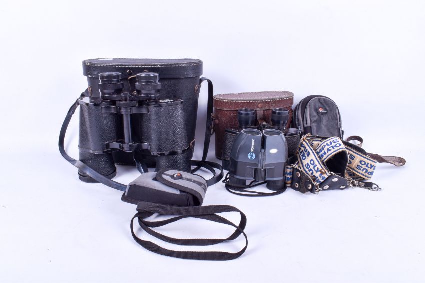 Three assorted binoculars. Including IMC Sportmatic 8x25 compact, etc.