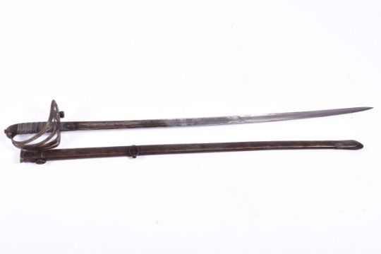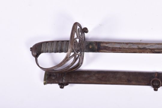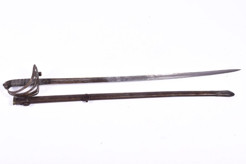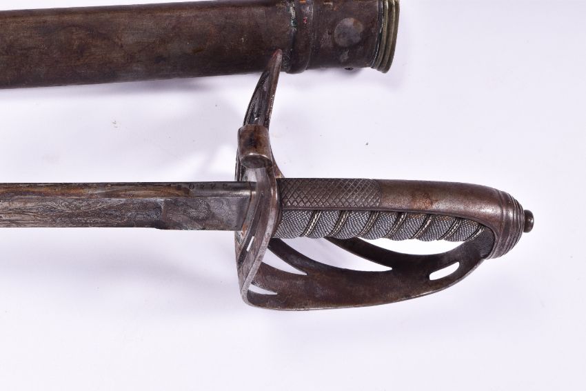 British 1827 pattern rifle officers sword and scabbard by Henry Wilkinson, Pall Mall, London. L98cm, blade 83cm.