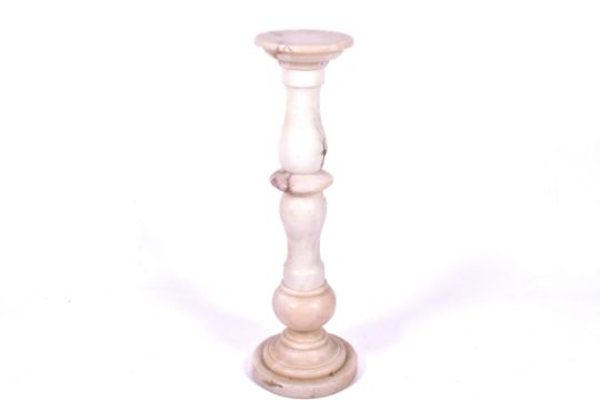 White marble baluster pedestal stand. Having a circular base and top. H95cm