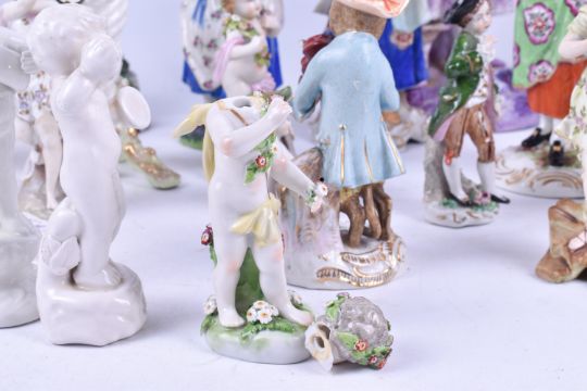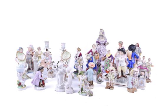 A collection of assorted porcelain figures mostly continential. Largest H29cm