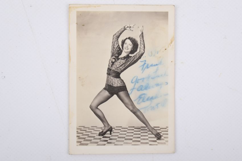 Eleanor Powell (1912-1982), signed black and white photograph of a dancer. 8.5cm x 12.5cm