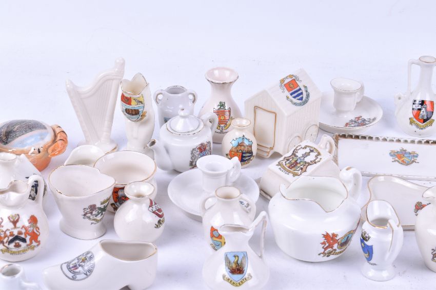 A quantity of crested China, including dishes, small jugs and vases. Largest H12cm