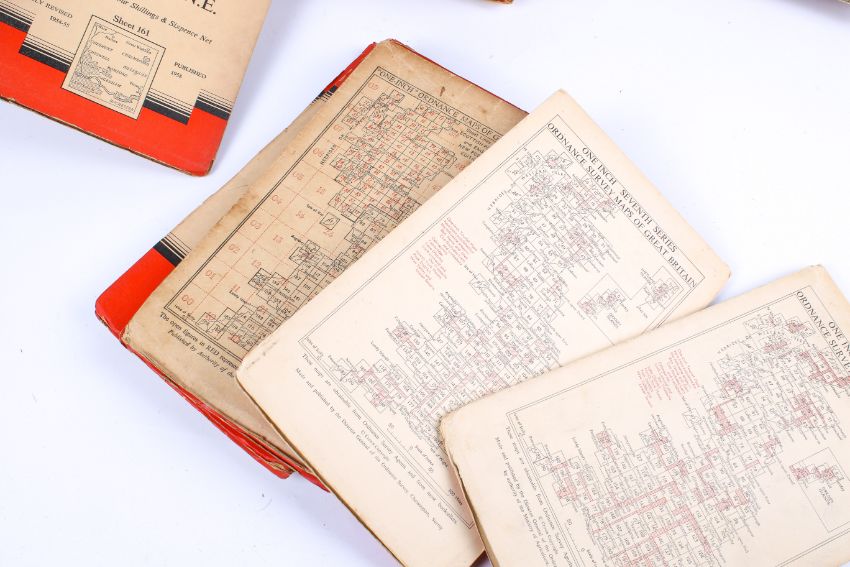 A collection of assorted early OS maps and books. Including Philip's 50 miles around London cloth edition, etc.