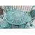 A 20th Century decorative cast metal garden table and four chairs. Painted green. Table H66cm x 86cm diameter