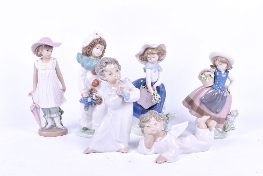 A collection of assorted Spanish porcelain figures. Including Lladro and Nao. Largest 19cm
