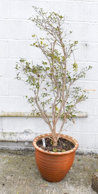 A young holly tree in a terracotta style pot. H180cm