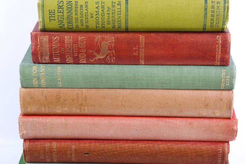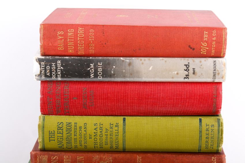 A collection of books related to country sports. Including Trencher & Kennel (1927), etc.