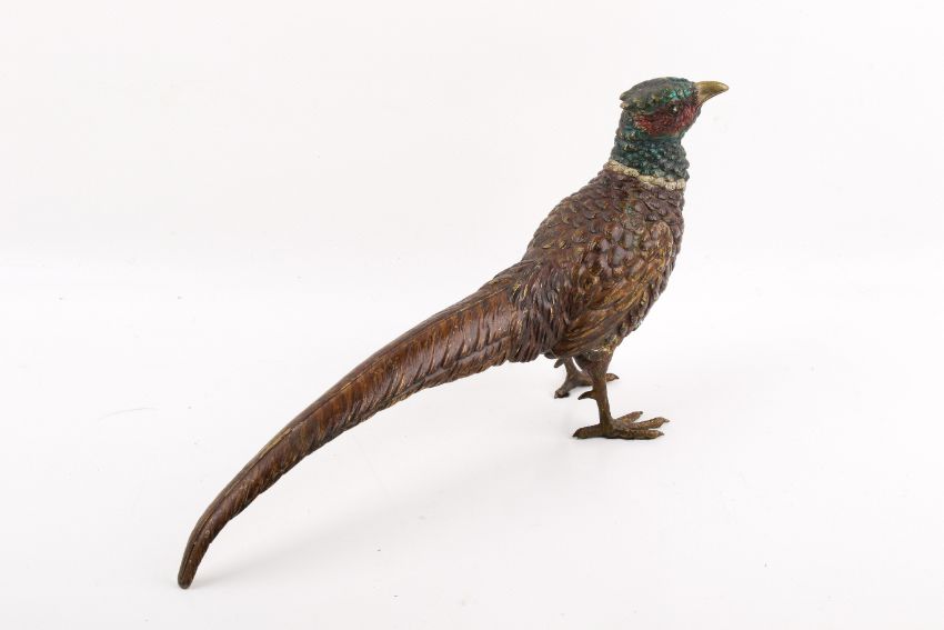 Cold painted cast bronze pheasant in the style of 'Bergman'. H16.5cm