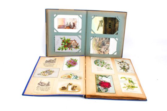 An album of vintage postcards and another. Mostly topographical, a few shipping the other album mostly flowers.