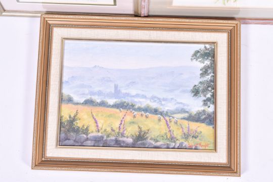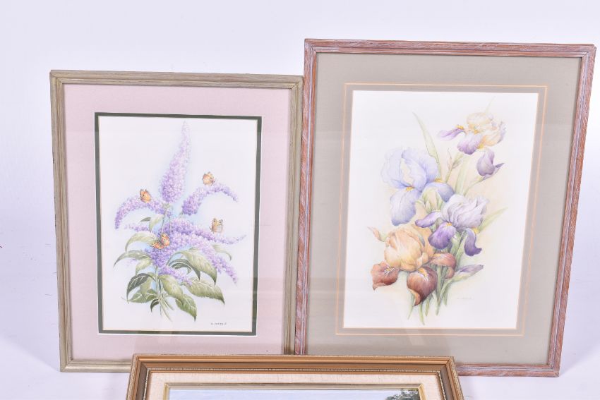 Three framed pictures. Including two signed M. Weale and another. Largest 38cm x 48cm