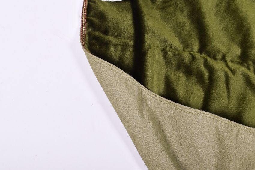 Two assorted tableclothes. Consisting of a lace tablecloth and a green velvet tablecloth.