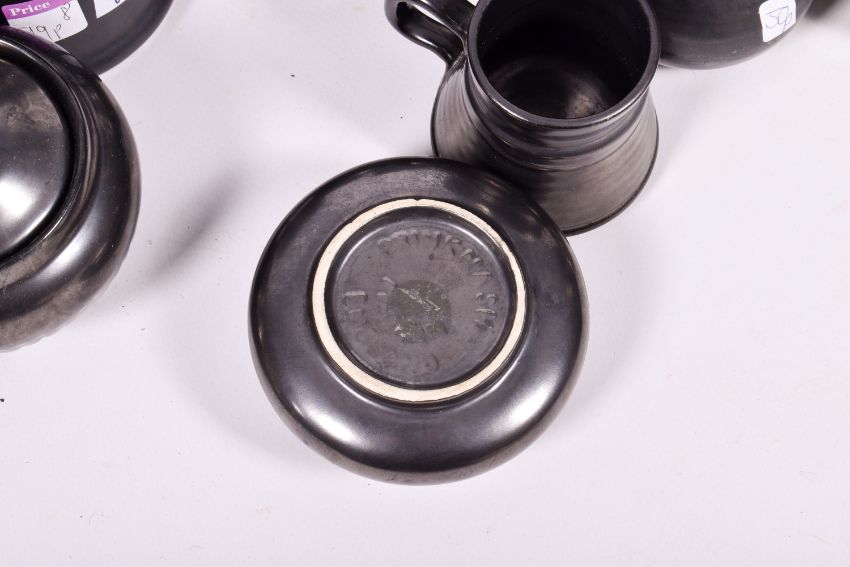 A quantity of Devon motto ware, Prinknash pottery and Fishley Holland wares. Largest H17cm