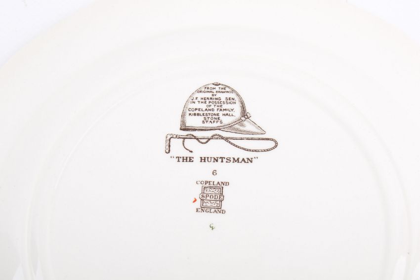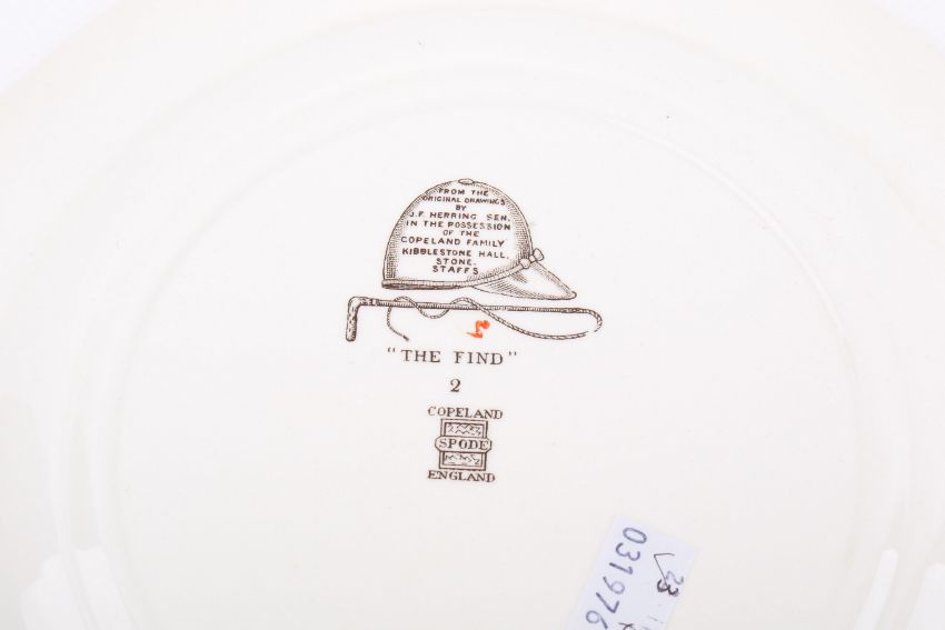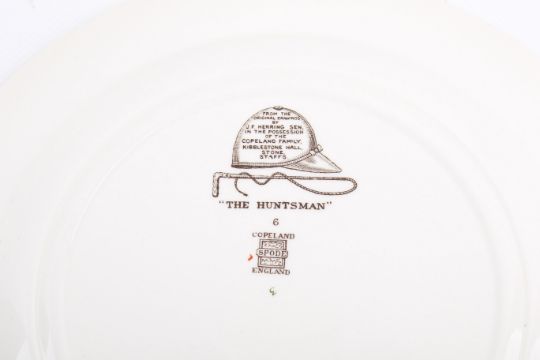 A pair of Copeland Spode hunting scene plates. Titled 'The Huntsman' and 'The Find', diameter 26cm.