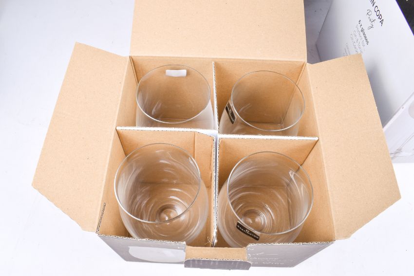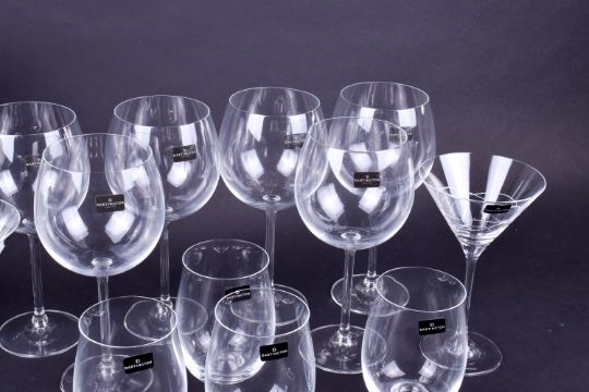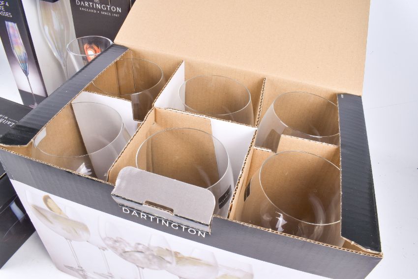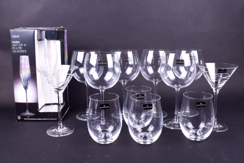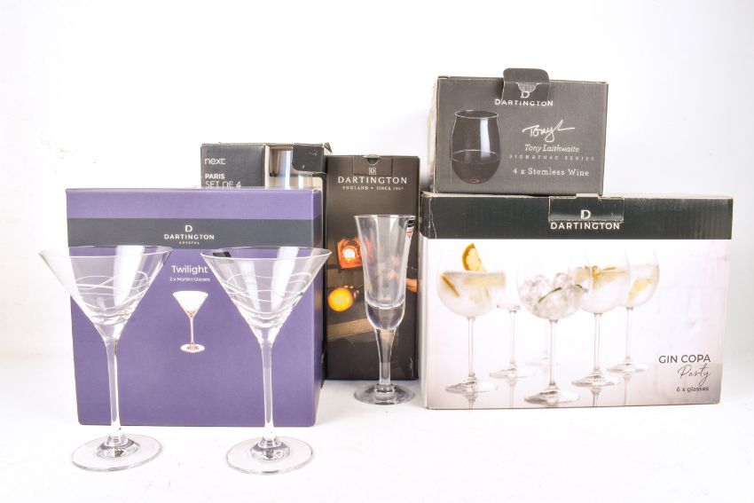 A collection of assorted as new drinking glasses. Including Dartington Crystal Twilight Martini and Laithwaite's Stemless, etc. All boxed.