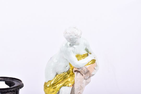 Painted composite figure along with a Victorian cast iron tripod base. H78cm