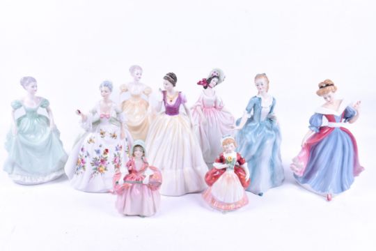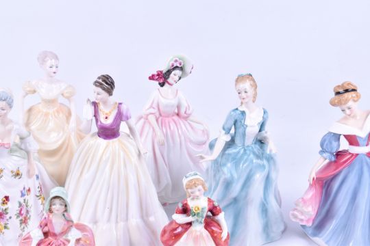 A collection of Doulton and Coalport 'lady' figures. Including Henrietta, Miranda HN 3037 and Diana HN 2468, etc. Largest H22cm