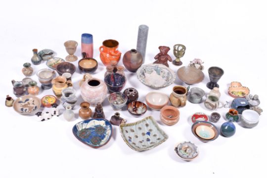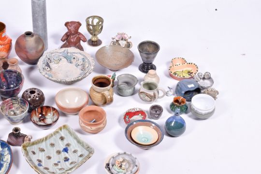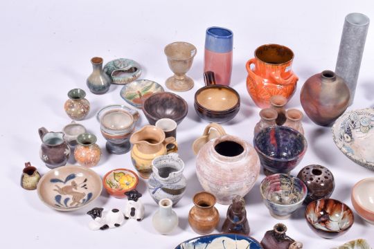 A collection of assorted 20th century studio art and other pottery items. Largest H26cm