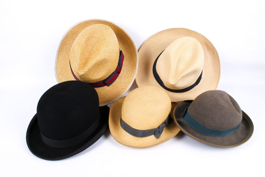 A group of assorted vintage hats. Including a Lincoln Bennett bowler (head circumference approximately 56cm), etc.