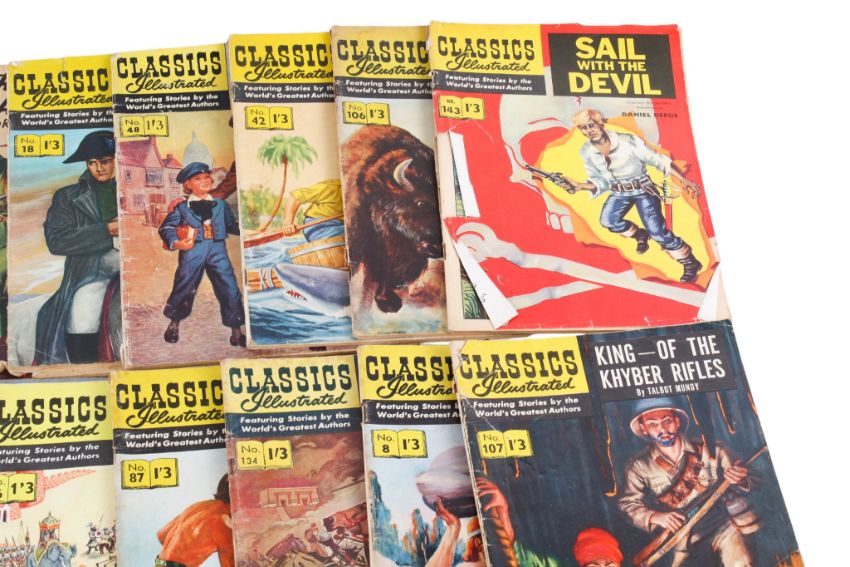 A collection of vintage 'Classics Illustrated' comics. Including No.125 'The Ox-Bow Incident', No,102 'The Moonstone', No.116 'Type', No.8 'The Odyssey' and more (32).