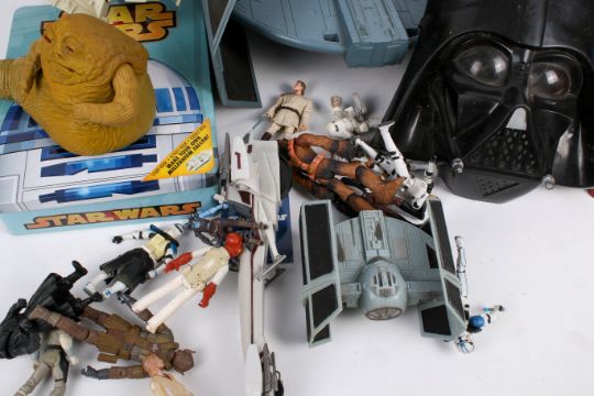 A collection of circa 1990s Star Wars action figures and vehicles, etc. Including Jabba The Hutt, Walkers, etc.