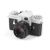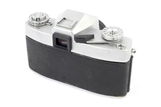 A silver Leica Leicaflex 35mm SLR camera. With a 50mm 1:2 Summicron-R lens. Serial number 1169090