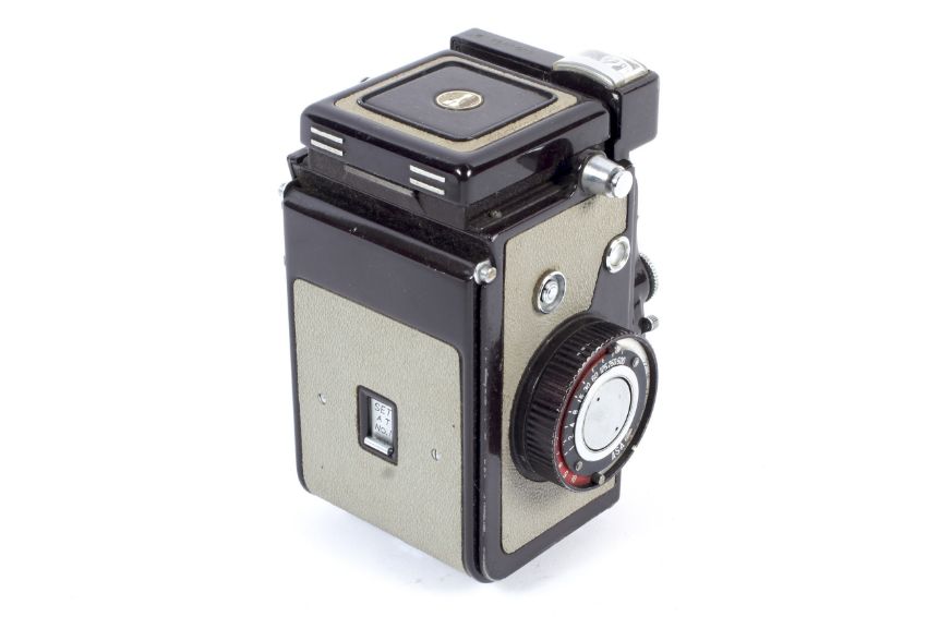 A Yashica 44 LM 4x4 TLR camera. With a 60mm 1:3.5 Yashinon taking lens and fitted case