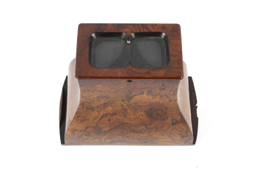 A late 19th/early 20th century burr walnut Stereoscopic viewer with slides and 'the Perfecscope'. The latter patent USA 1895, Canada 1896, by Underwood and Underwood, slides include Stonehenge, coal mining, Clifton Suspension Bridge during construction, and more