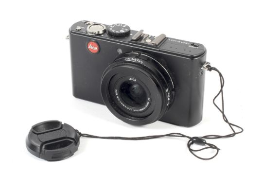 A black Leica D-Lux 4 digital point and shoot camera. Serial number 3642675