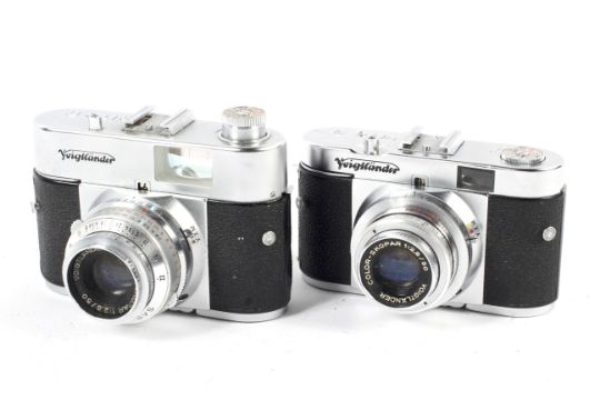 Two Voigtlander Vito B 35mm rangefinder cameras. Both with 50mm 1:2.8 Color-Skopar lenses