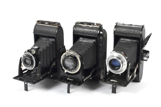 Three Voigtlander Bessa folding cameras. Each with 105mm lenses