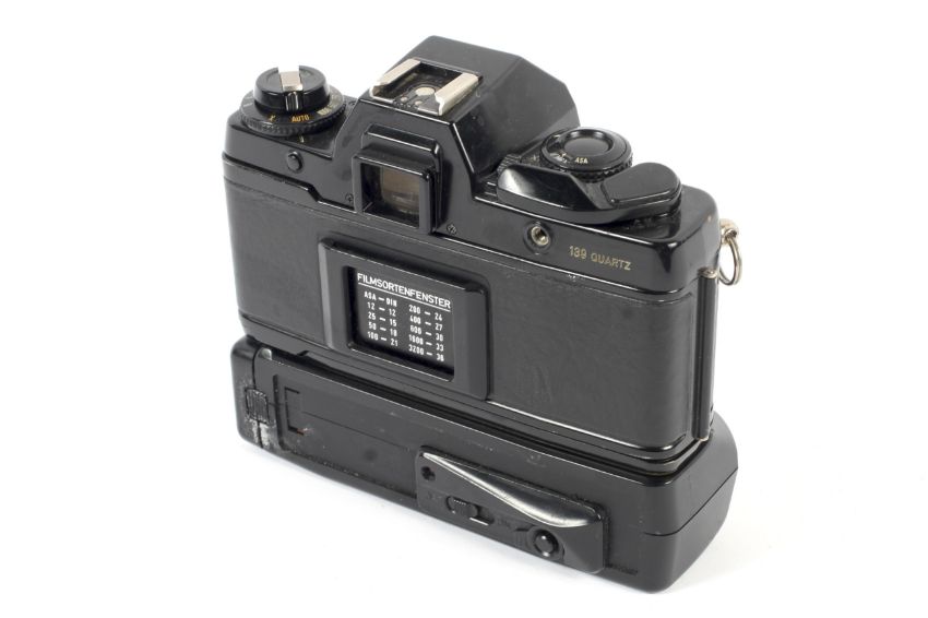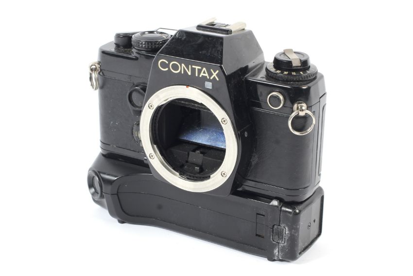 A Contax 139 Quartz 35mm SLR camera body. With a Contax 139 Winder II