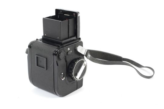 A Kowa Super 66 6x6 medium format SLR camera body. Together with a spare focusing screen and 120 film back